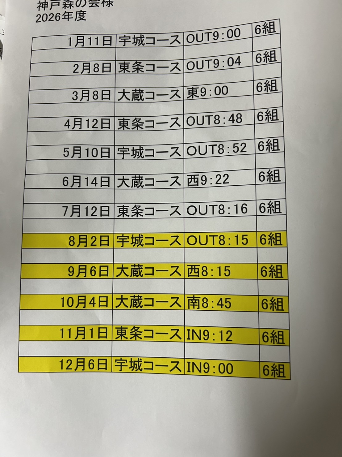 ゴルフコンペの会