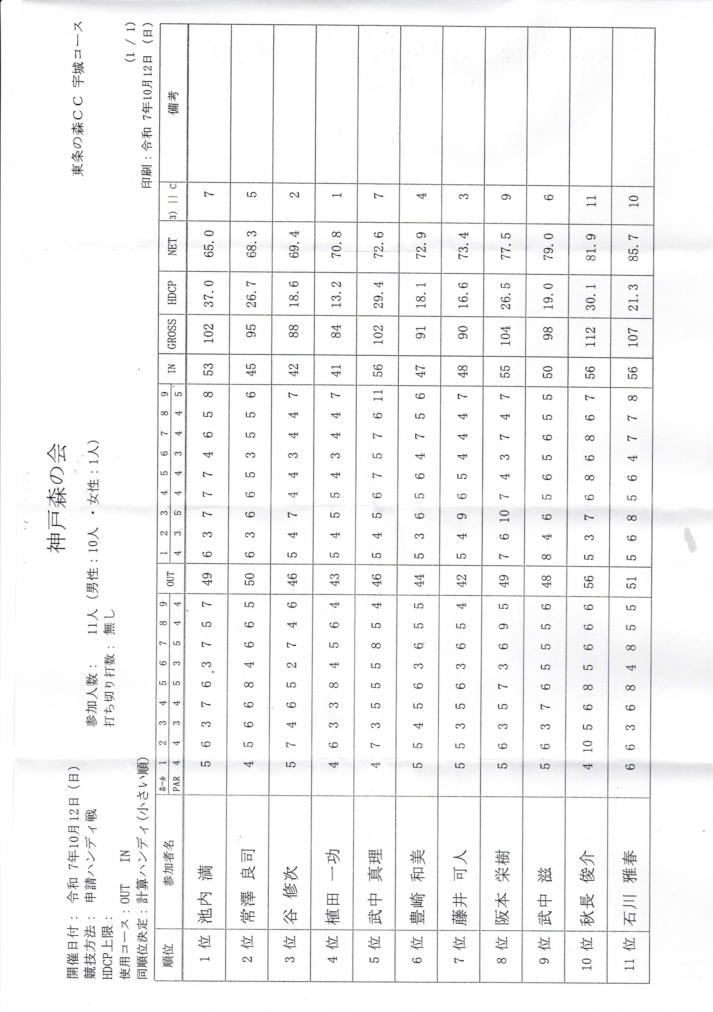 令和7年10月成績表