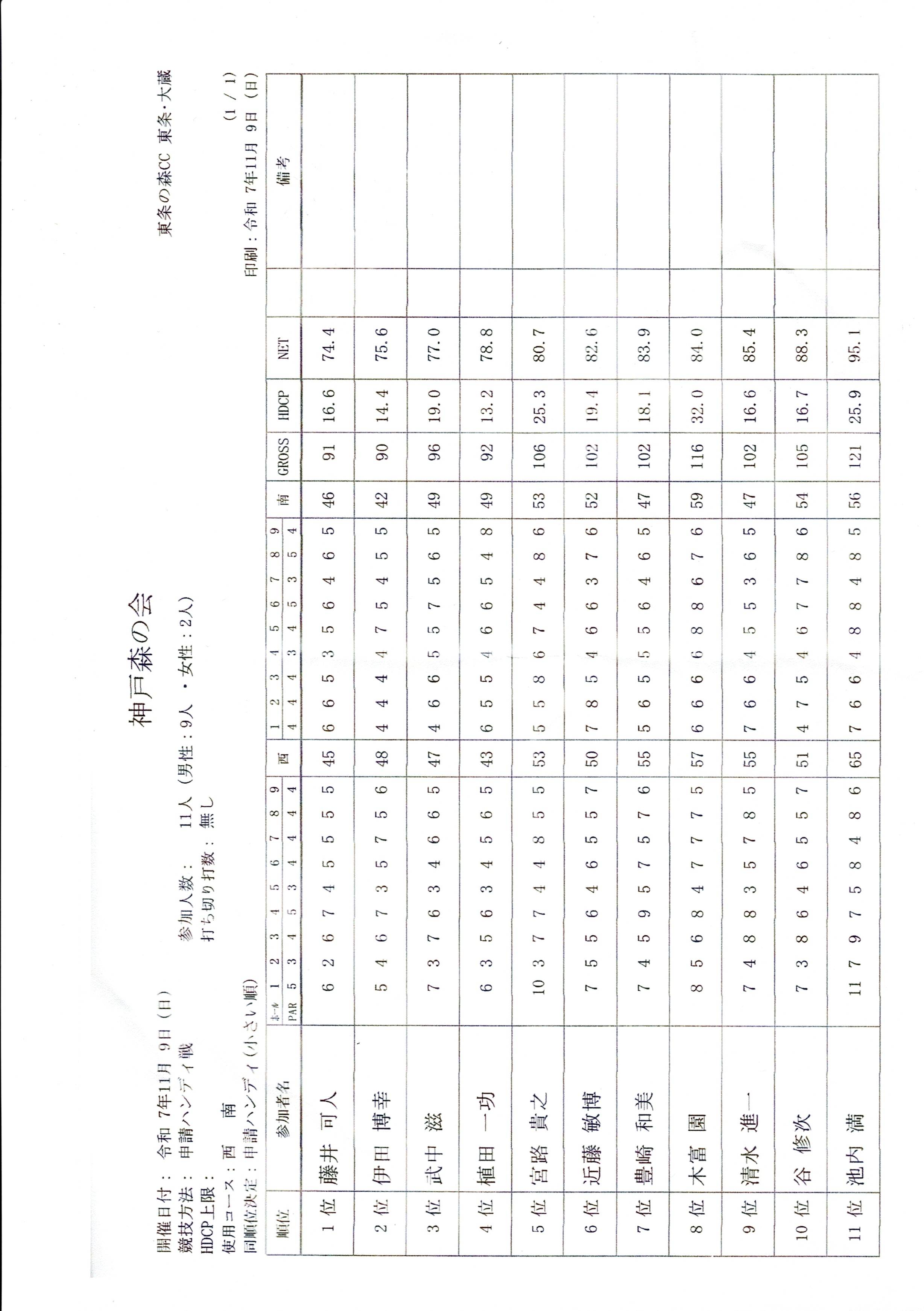 令和7年11月成績表